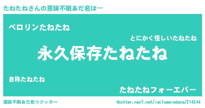 | ヘコむあだ名 | 『たねたね(遠い目)』『たねふぇ~』 |