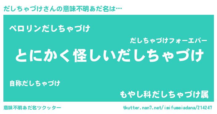 | 女子向けラノベタイトル風あだ名 | 『だしちゃづけ様がみてる』 |