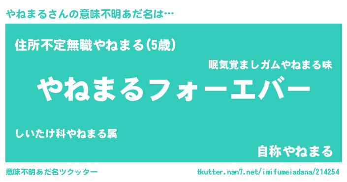 | ファンタジー風あだ名 | 『エターナルヤネマルー』『ゼヤネトゥ』 |