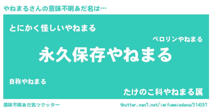 | 伝説のあだ名 | 『古より伝わる暗殺者やねまる』 |