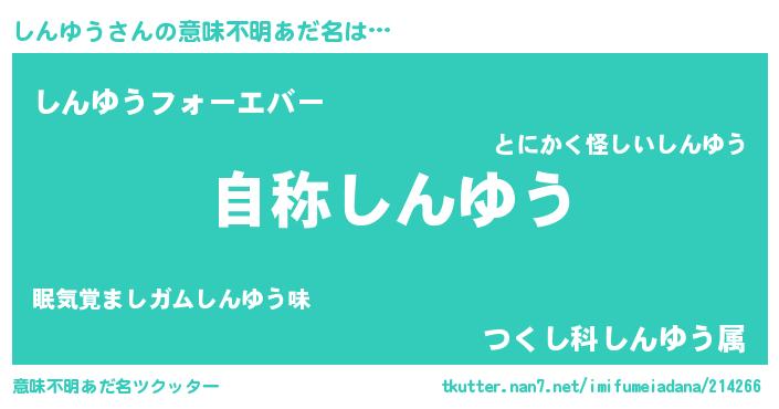 | 男性向けラノベタイトル風あだ名 | 『Re:しんゆうから始める異世界生活』 |
