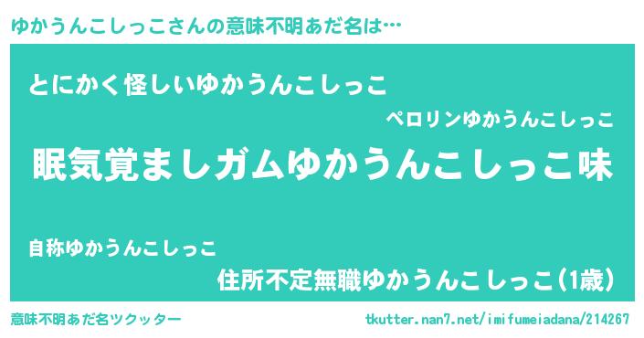 | 男性向けラノベタイトル風あだ名 | 『うちのゆかうんこしっこが世界を掌握している!』 |