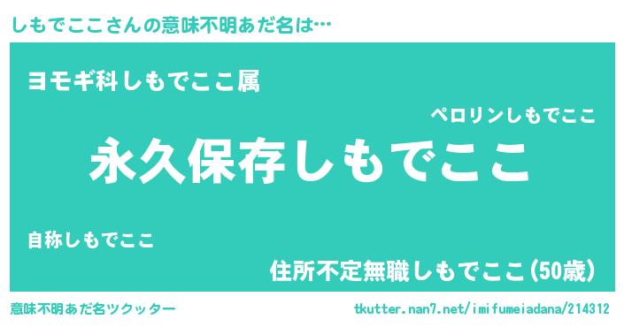 | ヘコむあだ名 | 『しもでここ(爆)』『しもにゅー』 |