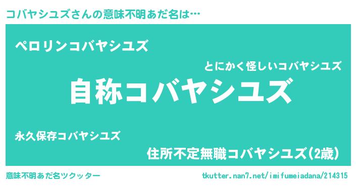 | 欧米人風あだ名 | 『ケンブリッジコバヤシユズ』 |