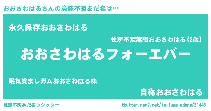 | 男性向けラノベタイトル風あだ名 | 『やはりおおさわはるの青春ラブコメはまちがっている 』 |