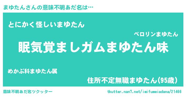 | ヒーロー風カッコイイあだ名 | 『天空の使者まゆたん』『暗黒騎士マユ』 |