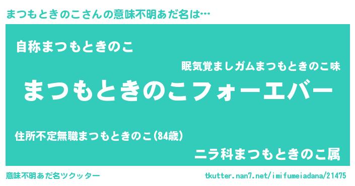 | 女子向けラノベタイトル風あだ名 | 『まつもときのこの雑貨屋さん』 |