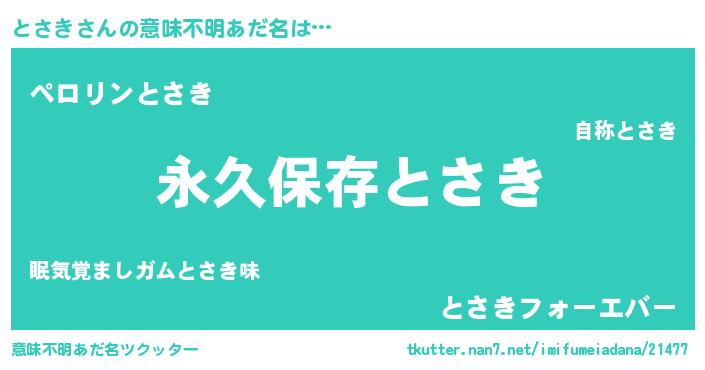 | 男性向けラノベタイトル風あだ名 | 『とさきという概念が存在しない退屈な世界 』 |