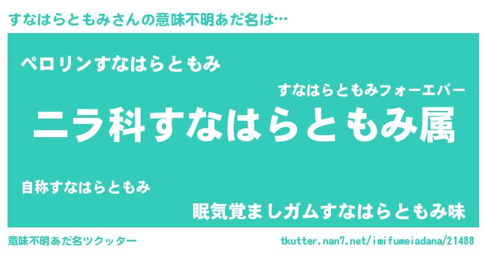 | 胡散臭い通販商品みたいなあだ名 | 『億万長者になれる水晶球…その名も「すなはらともみ」』 |