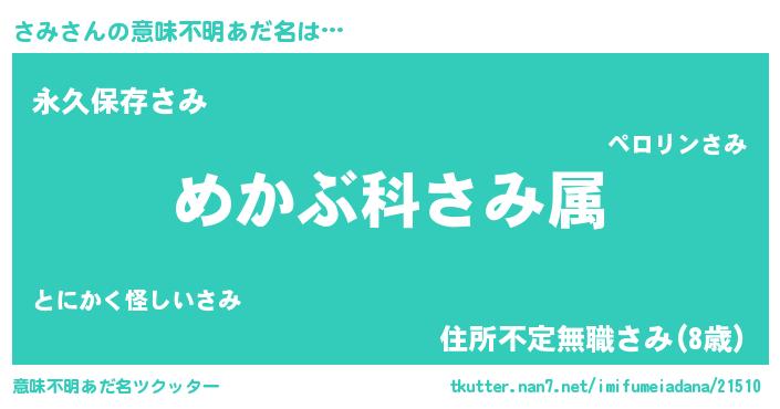 | 男性向けラノベタイトル風あだ名 | 『はたらくさみさま!』『魔弾の王とさみ』 |