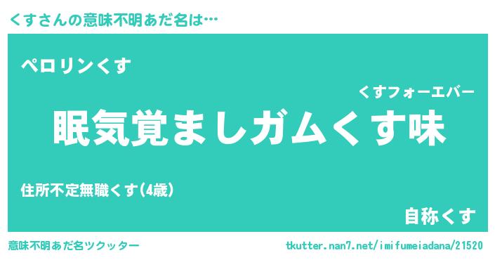 | 女子向けラノベタイトル風あだ名 | 『死神くすの再婚』『くすアンティーク』 |