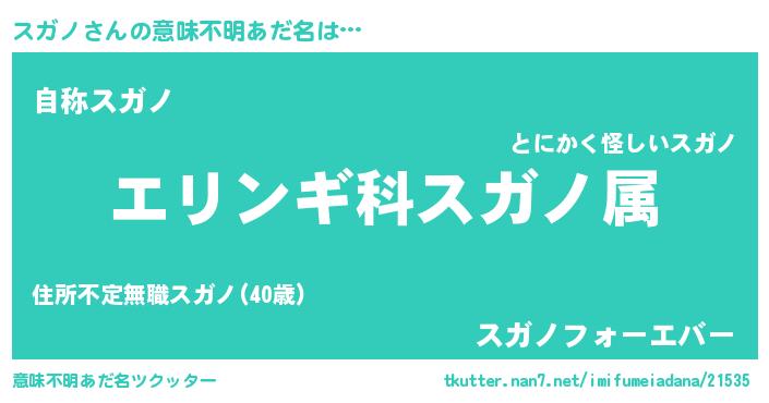 | 男性向けラノベタイトル風あだ名 | 『スガノスレイヤー』『魔弾の王とスガノ』 |