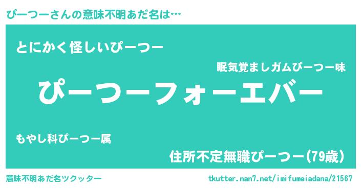 | ヒーロー風カッコイイあだ名 | 『ウルトラぴーつーマン』『幻影騎士ピー』 |