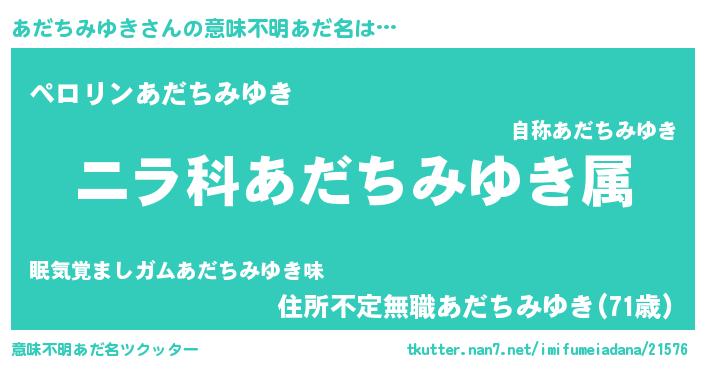 | 胡散臭い通販商品みたいなあだ名 | 『億万長者になれる霊験あらたかなお札…その名も「あだちみゆき」』 |