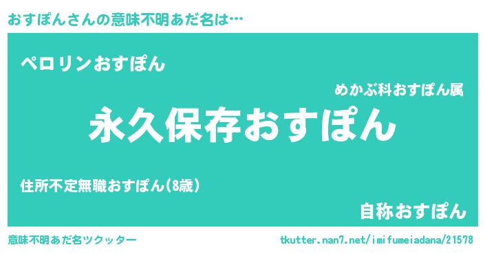 | 男性向けラノベタイトル風あだ名 | 『おすぽんに滅ぼされるだけの簡単なお仕事です』 |