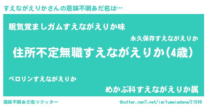 | 男性向けラノベタイトル風あだ名 | 『この素晴らしい世界にすえながえりかを!』 |