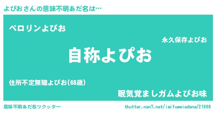 | 欧米人風あだ名 | 『ケンブリッジよぴお』『マイケルよぴお』 |