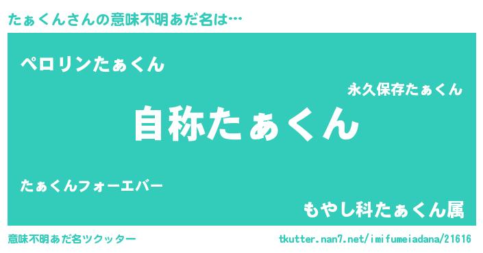 | ヒーロー風カッコイイあだ名 | 『最強戦士タァクン』『スーパータァクン』 |