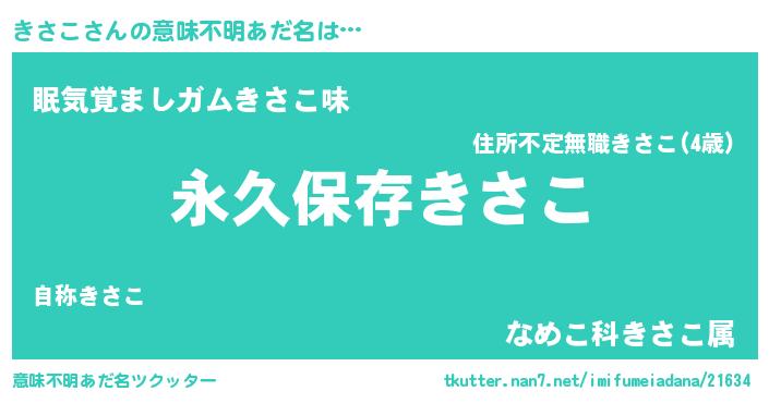 | 男性向けラノベタイトル風あだ名 | 『きさこという概念が存在しない退屈な世界 』 |