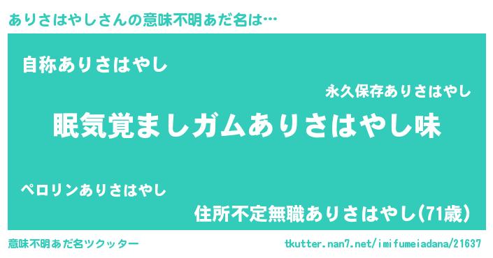 | ヒーロー風カッコイイあだ名 | 『慈愛の使者ありさはやし』 |