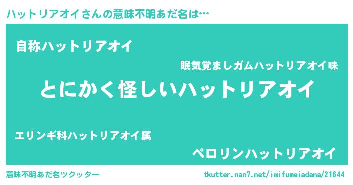 | ポケモン風あだ名 | 『ヒハットリアオイ』『ハッセウス』 |