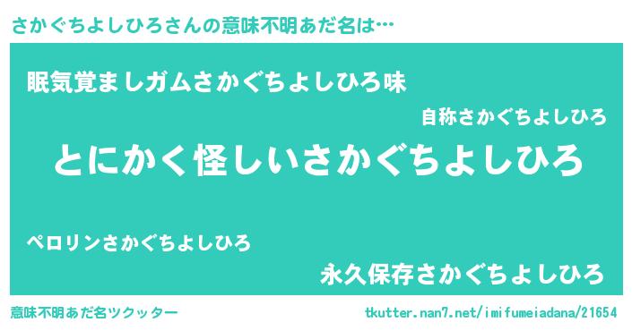 | 男性向けラノベタイトル風あだ名 | 『ダンジョンにさかぐちよしひろを求めるのは間違っているだろうか』 |