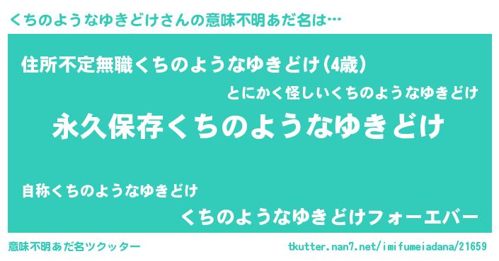 | 胡散臭い通販商品みたいなあだ名 | 『絶対に幸福をもたらす水素水…その名も「くちのようなゆきどけ」』 |