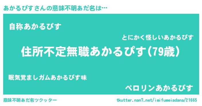 | 料理風あだ名 | 『あかるぴすのカルパッチョ風』 |