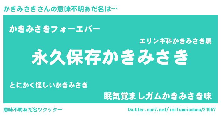 | ヘコむあだ名 | 『かきみさき(小並感)』『酢こんぶ』 |