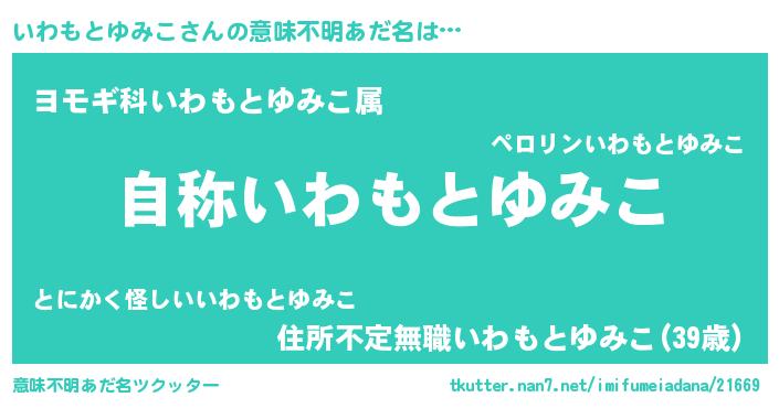 | 欧米人風あだ名 | 『いわもとゆみこ・ステッグマイヤー』 |