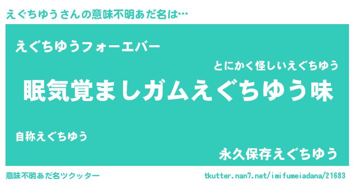 | ヒーロー風カッコイイあだ名 | 『慈愛の使者えぐちゆう』『幻影騎士エグ』 |