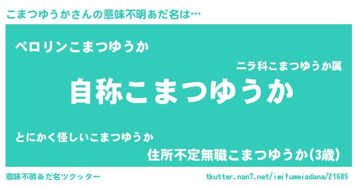 | 男性向けラノベタイトル風あだ名 | 『こまつゆうかに滅ぼされるだけの簡単なお仕事です』 |