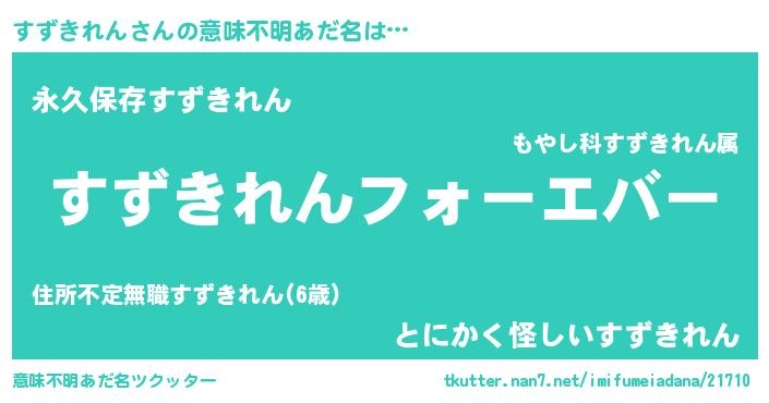 | 胡散臭い通販商品みたいなあだ名 | 『運命の人と巡り会える高級そうな壺…その名も「すずきれん」』 |