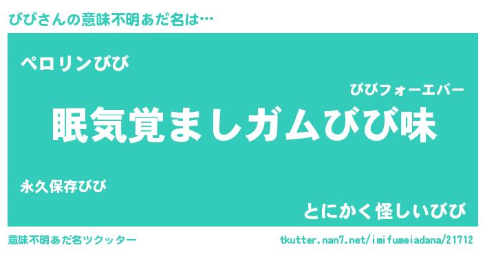 | 女子向けラノベタイトル風あだ名 | 『びび恋絵巻』『びびは平凡を望む』 |