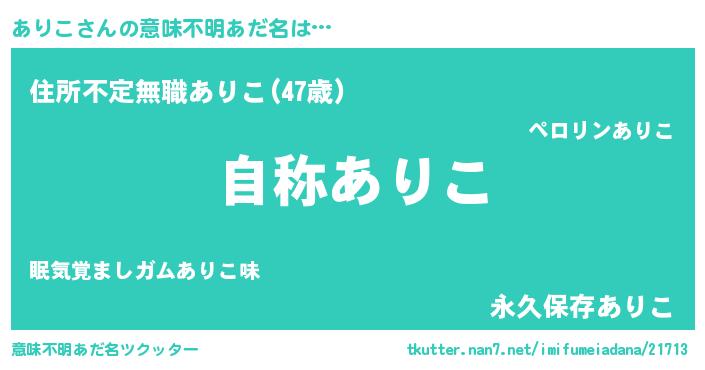 | 男性向けラノベタイトル風あだ名 | 『うちのありこが世界を掌握している!』 |