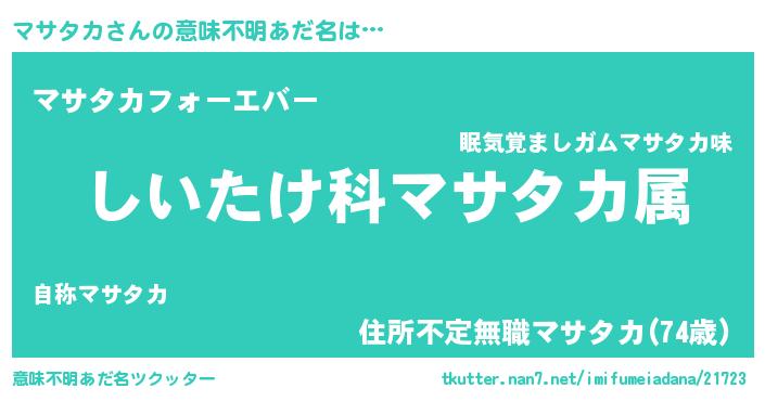 | 男性向けラノベタイトル風あだ名 | 『マサタカスレイヤー』『緋弾のマサタカ』 |