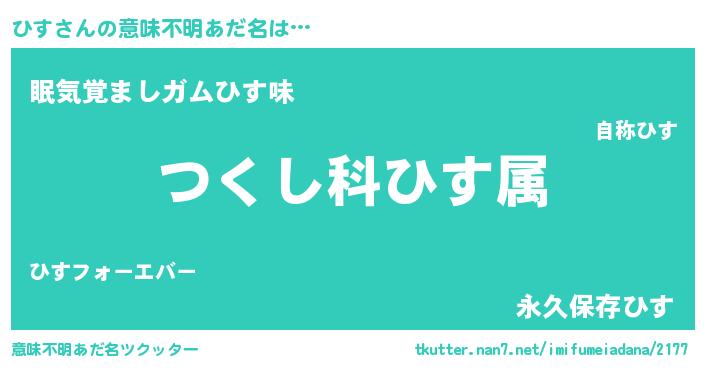 | ヘコむあだ名 | 『ひす(笑)』『つくし』『ひすもー』 |