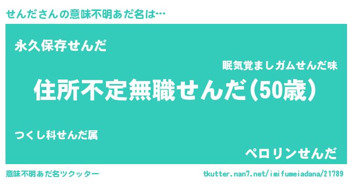 | 男性向けラノベタイトル風あだ名 | 『魔弾の王とせんだ』『せんだの憂鬱』 |