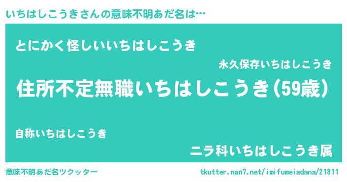 | 男性向けラノベタイトル風あだ名 | 『この素晴らしい世界にいちはしこうきを!』 |