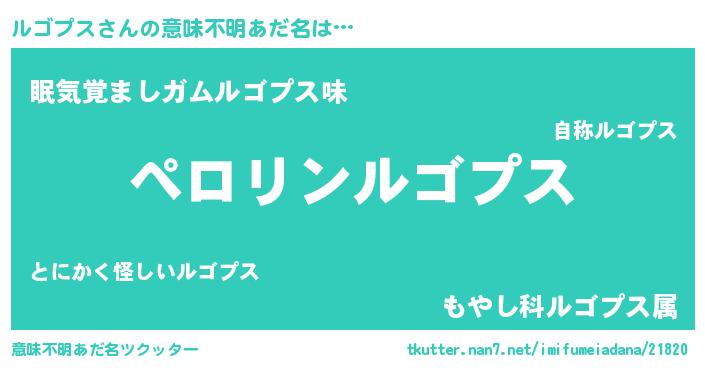 | 男性向けラノベタイトル風あだ名 | 『ルゴプスアートオンライン』 |