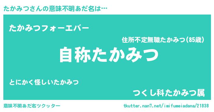 | 男性向けラノベタイトル風あだ名 | 『はたらくたかみつさま!』 |