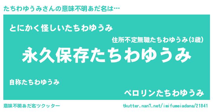 | ヘコむあだ名 | 『たちわゆうみ(遠い目)』『たちっちょ』 |