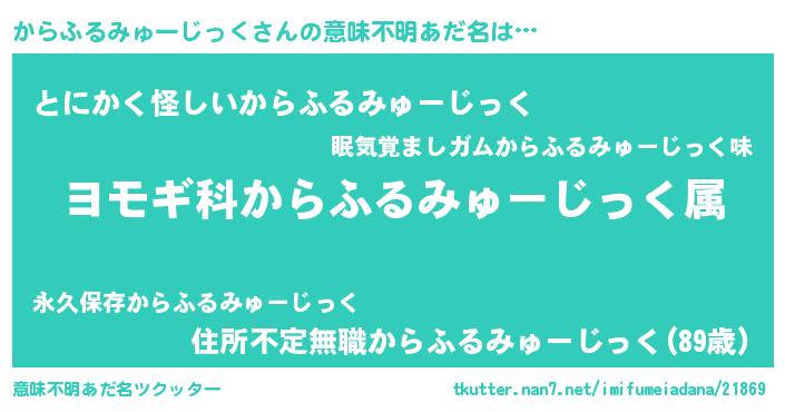 | 胡散臭い通販商品みたいなあだ名 | 『全米が絶賛したサプリメント…その名も「からふるみゅーじっく」』 |