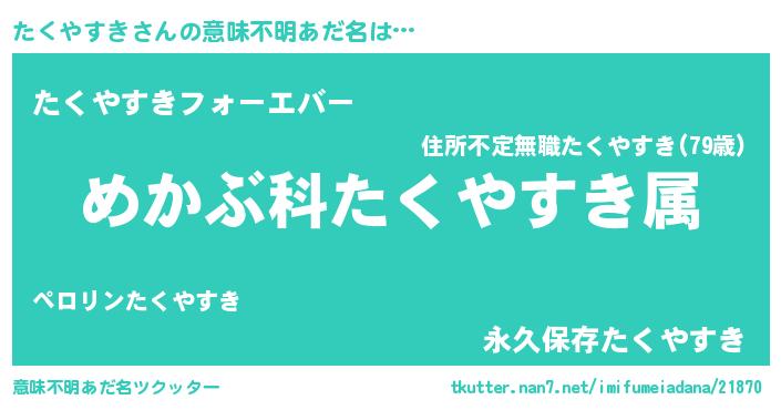 | ファンタジー風あだ名 | 『ユリタクヴァット』『タクディッシュ』 |