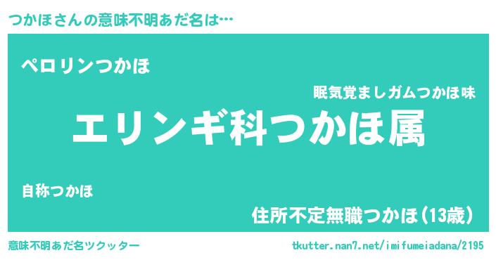 | 男性向けラノベタイトル風あだ名 | 『ツカホスレイヤー』『緋弾のツカホ』 |