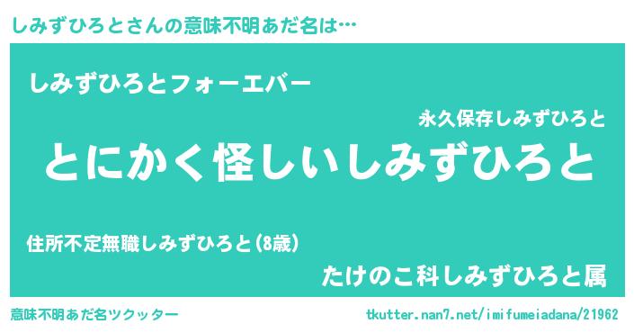 | 女子向けラノベタイトル風あだ名 | 『しみずひろとは平凡を望む』 |