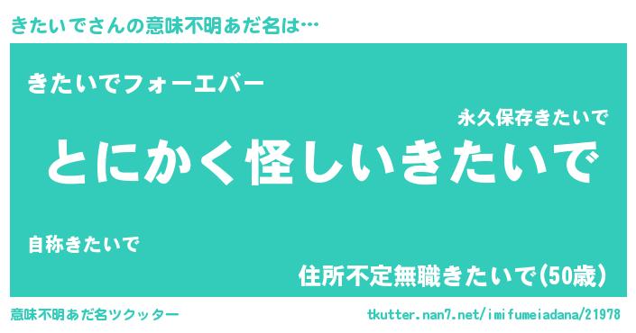| 女子向けラノベタイトル風あだ名 | 『きたいで様がみてる』 |