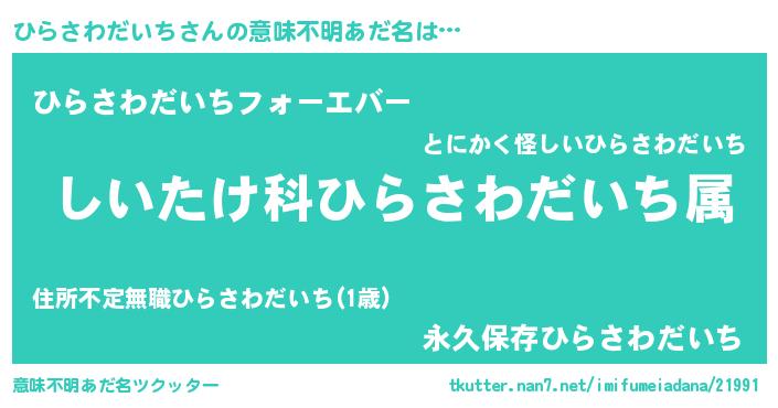 | 胡散臭い通販商品みたいなあだ名 | 『幸せが訪れる高級そうな壺…その名も「ひらさわだいち」』 |