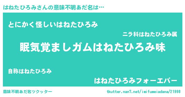 | ポケモン風あだ名 | 『ハックウザ』『ヒハネタヒロミ』 |