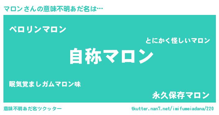 | 欧米人風あだ名 | 『アンジェラ・マロン』『マイケルマロン』 |